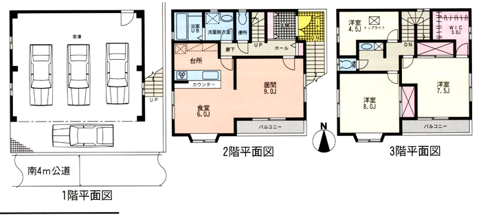 建物面積/1F 49.27㎡ 2F 51.75㎡ 3F 52.84㎡ 合計153.86㎡