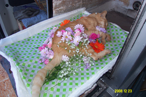 箱へ遺体を収めた。10年前にやはり会社に居着いていた猫が交通事故で死んだ時は
