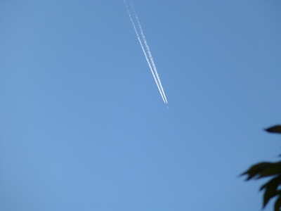 雲のない青空には飛行機雲が