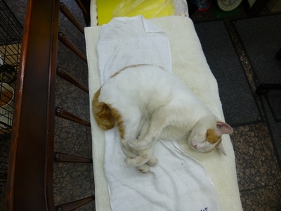 Jr.が朝の登場から餌が終わっても会社で寝ている姿