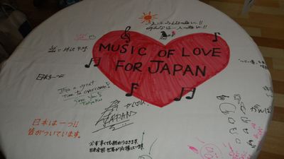 telすると明日震災チャリティバザー&ライブをやることになって