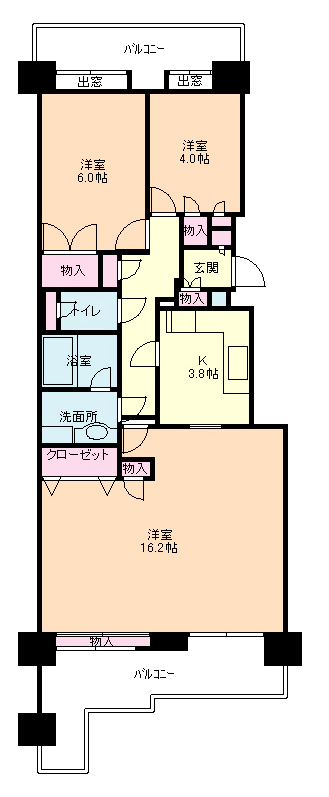 3LDKの和室をなくしてLDを拡張したタイプです